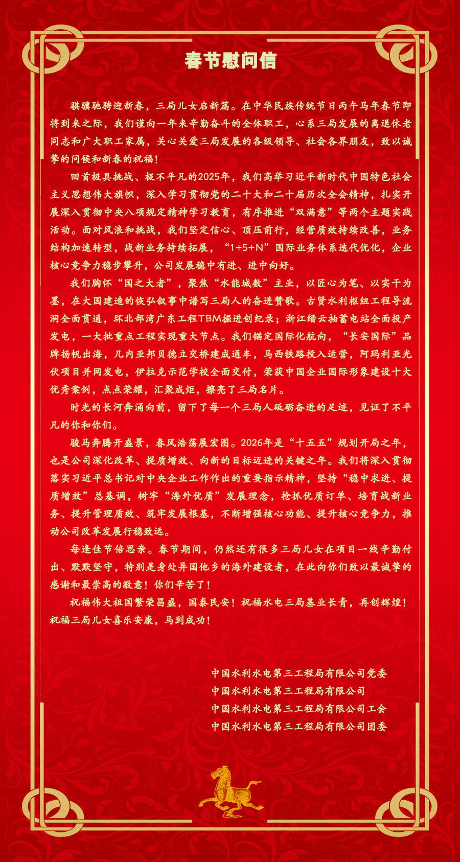 【中国水电三局2026春节慰问信】
