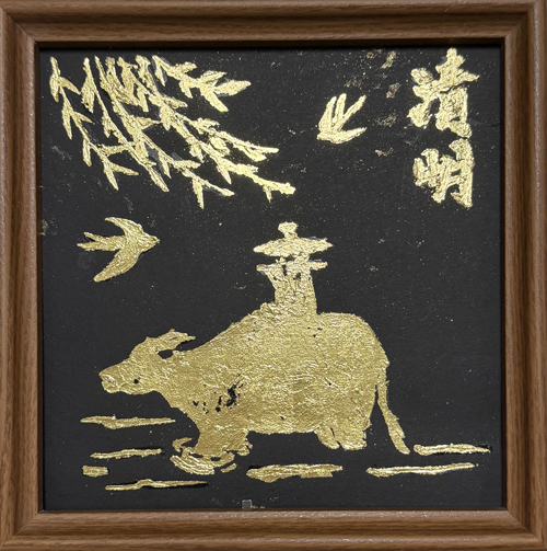 【金箔画】柳牧清明